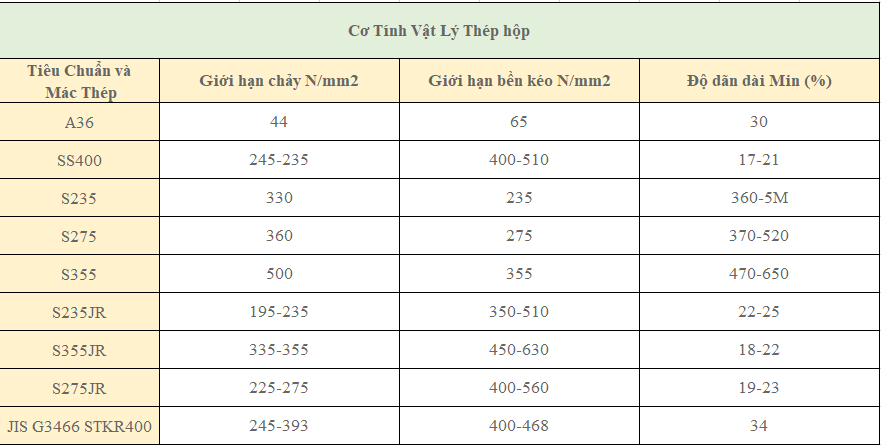 Cơ Tính Vật Lý của thép hộp 300×100