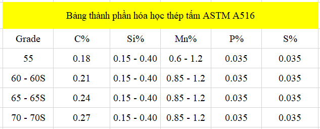Thành Phần Hóa Học Của Thép Tấm ASTM A516: