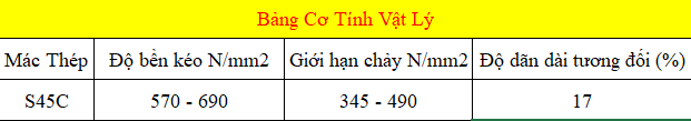 | Stt | Tên Sản Phẩm S45C | Khối Lượng(Kg/Mét) |